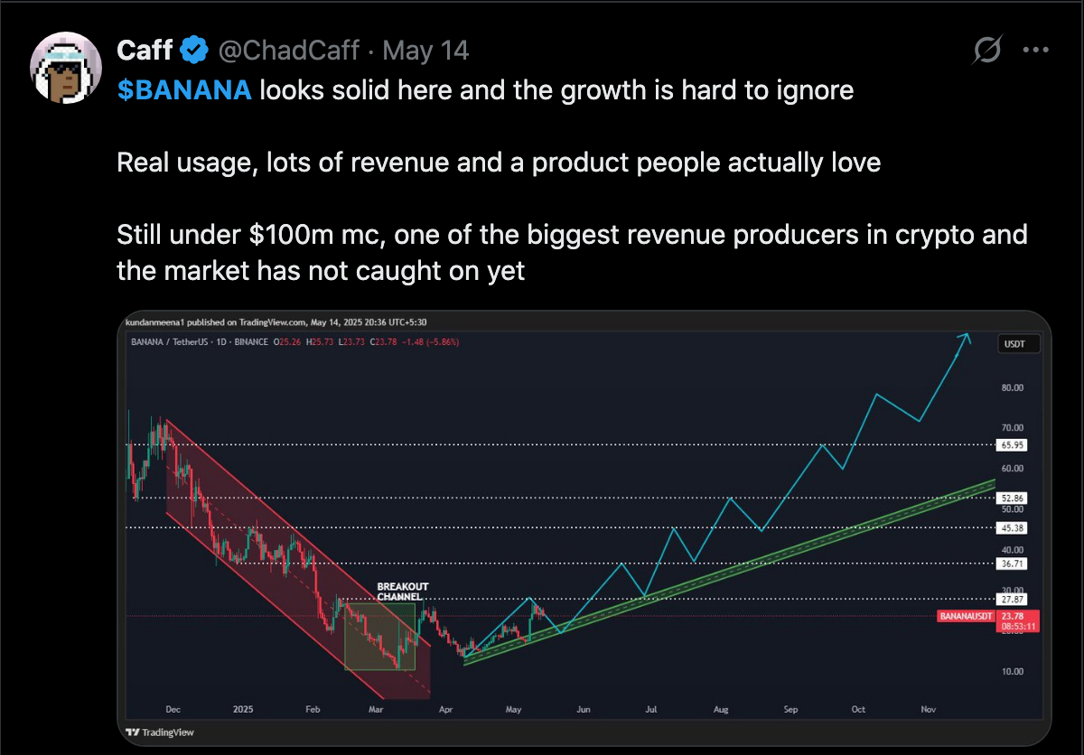 🍌 @ChadCaff came through with one of the cleanest takes: real product, real usage, actual revenue, and somehow still under $100M market cap. He said it best: the market hasn’t caught on yet. (We’re not complaining.)